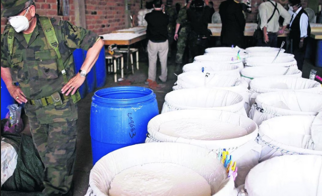 En los municipios de Mocorito, Badiraguato, Culiacán y Cosalá, se localizaron e inhabilitaron siete áreas de concentración de materiales diversos para la fabricación de drogas sintéticas. Estos sitios habían sido identificados como puntos críticos para la producción y distribución de sustancias ilegales, lo cual representa una clara amenaza para la seguridad pública.