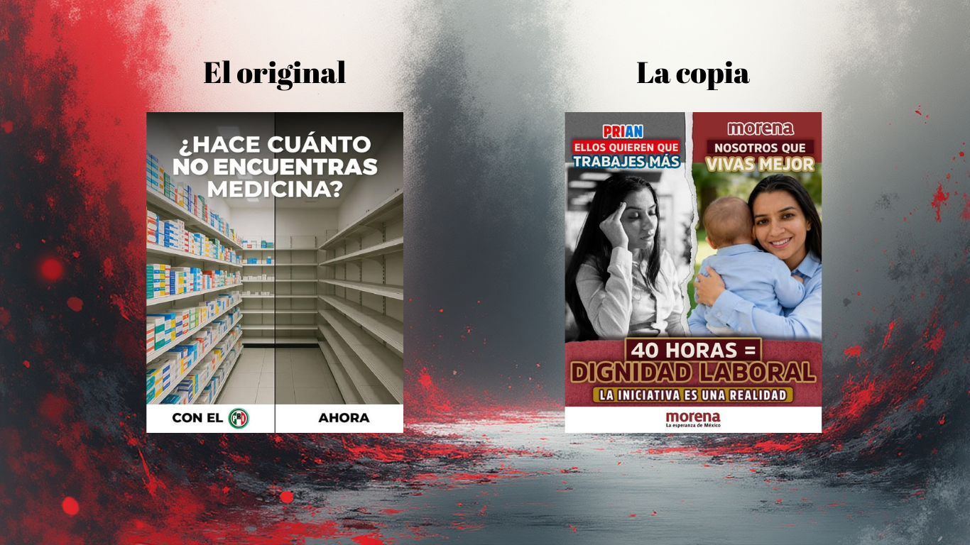 La verdad ha salido a la luz y es una vergüenza para el partido en el poder. Morena, que siempre presumió ser “diferente”, ahora ha caído en lo más bajo: se convirtieron en los copiones de la clase. Ante la falta de ideas y el miedo de perder terreno en internet, el equipo de comunicación oficialista ha decidido tirar a la basura su estilo propio para dedicarse a plagiar descaradamente todo lo que hace el PRI.